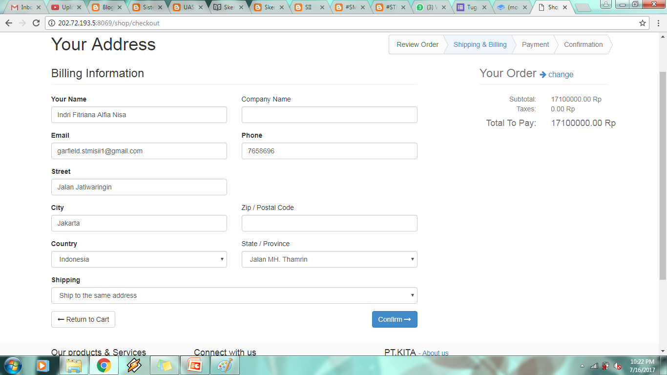 c. Setelah itu isi data pribadi untuk keperluan pengiriman barang, jika sudah klik Confirm